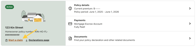 2. Click the Start a Claim button on your Home policy.